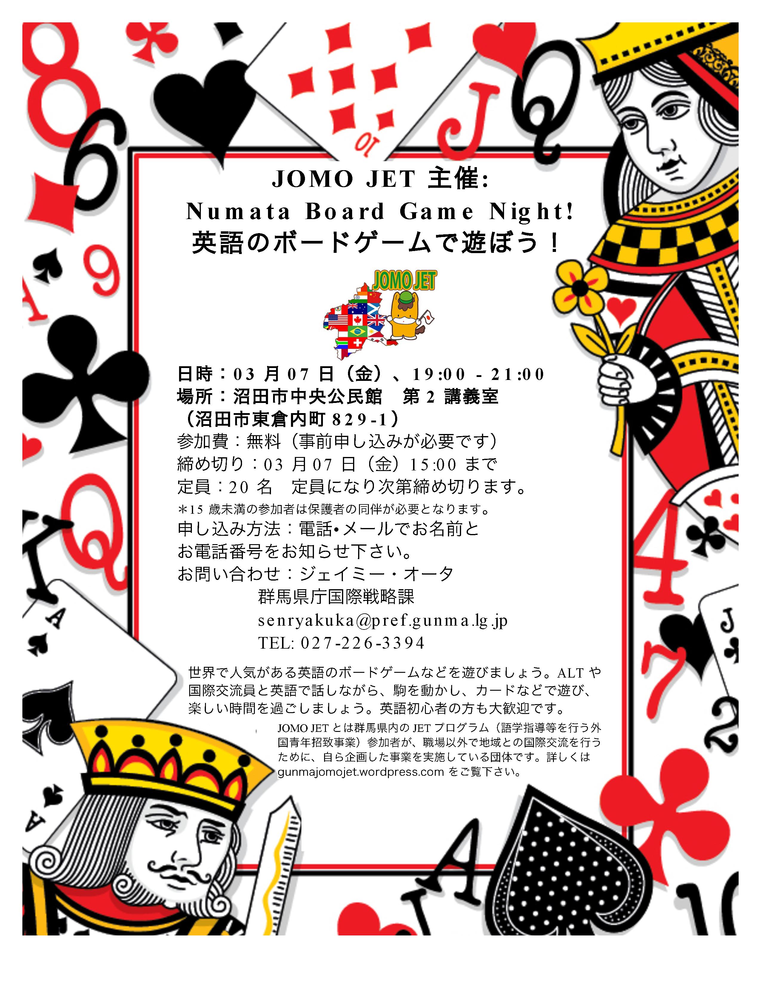 03月07日(金)に沼田ボードゲームナイトを開催します!