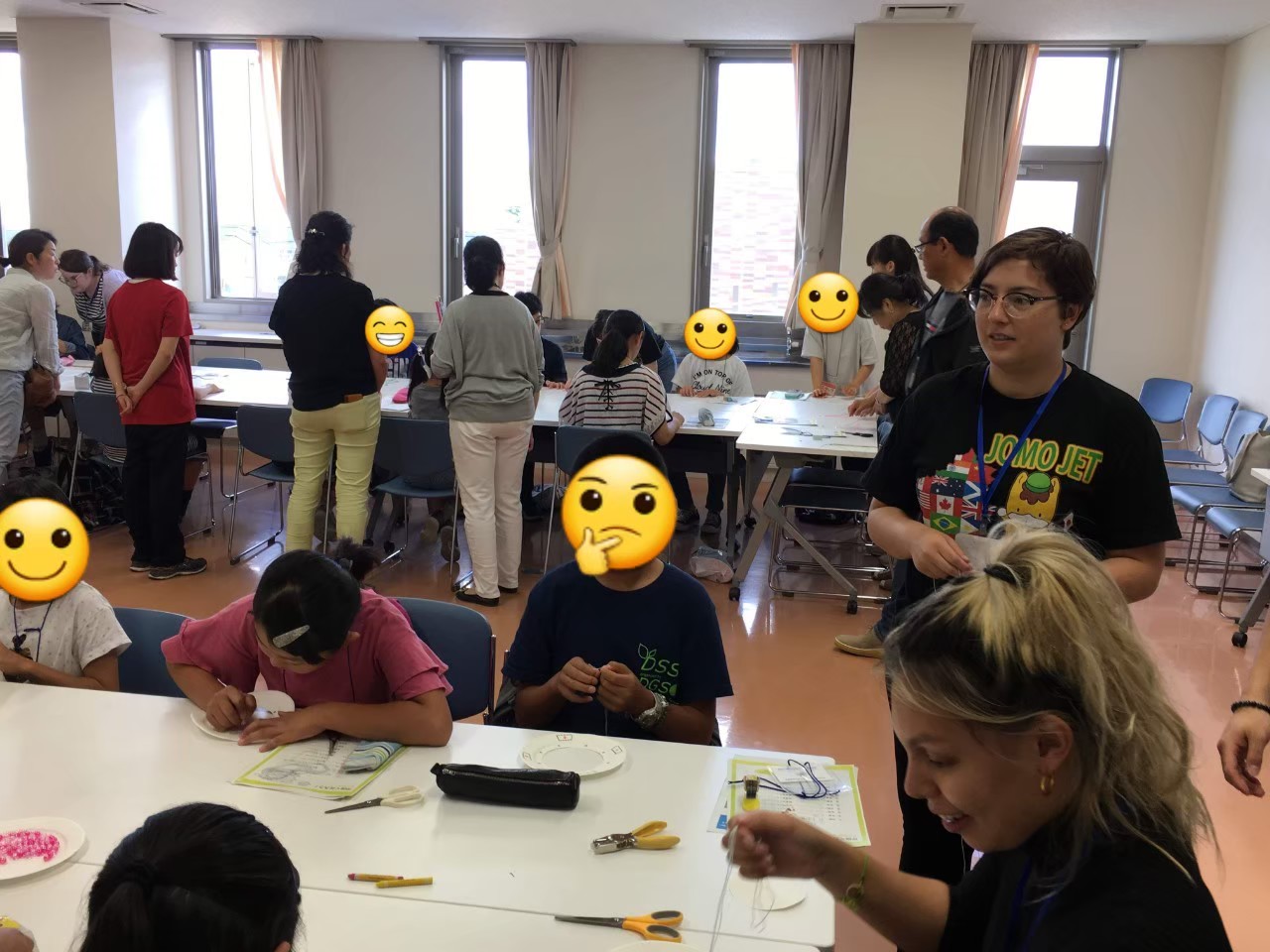 Over the summer JOMO JET joined forces with the Takasaki International Relations Society for a craft party with the Junior International Club. Thirty-eight students came out to try their hand with us at making friendship bracelets, a craft classic, and dream catchers, a traditional Native American craft.