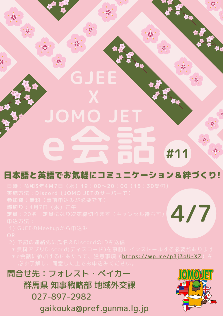 JOMO JET and GJEE will team up again to host this super simple online language exchange event. Groups of two English speakers and two Japanese speakers talk for 30 minutes in English and for 30 minutes in Japanese. Anyone can join regardless of language level, so we hope to see you there!
