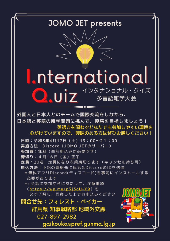 4月17日(土)多言語クイズ大会「IQ: International Quiz」開催のお知らせ!(English below!)