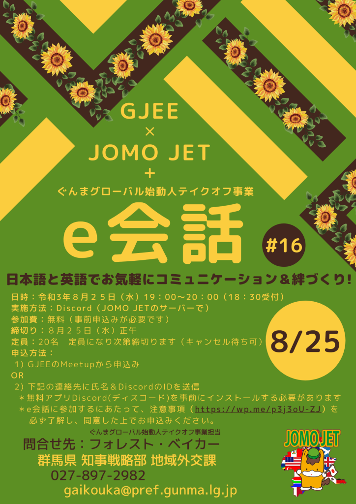 8月25日(水)オンライン和英言語交流「第16回e会話」開催のお知らせ!(English below!)