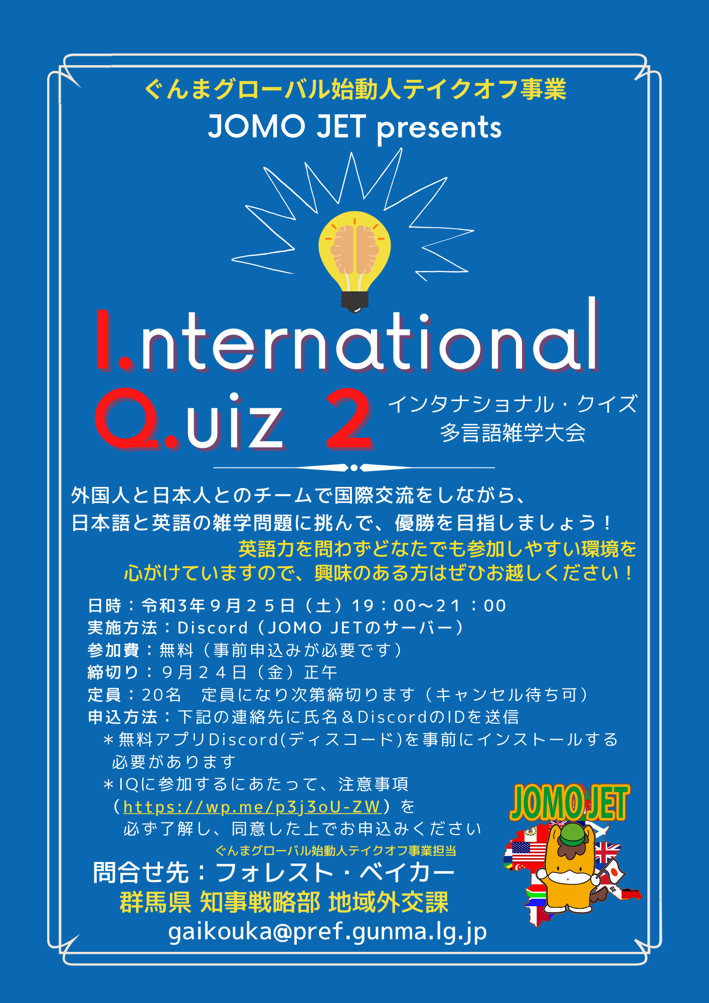 9月25日(土)に世界屈指の大人気多言語クイズ大会「第2回IQ:International Quiz」を開催いたします!