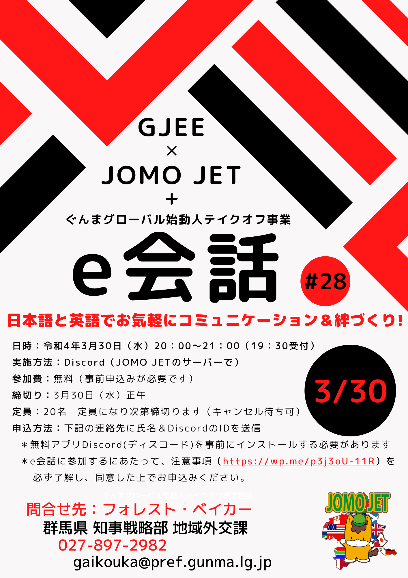 Incidentally, e-Kaiwa #28 will be held on Wednesday, March 30th from 20:00 to 21:00, so hope to see you there!