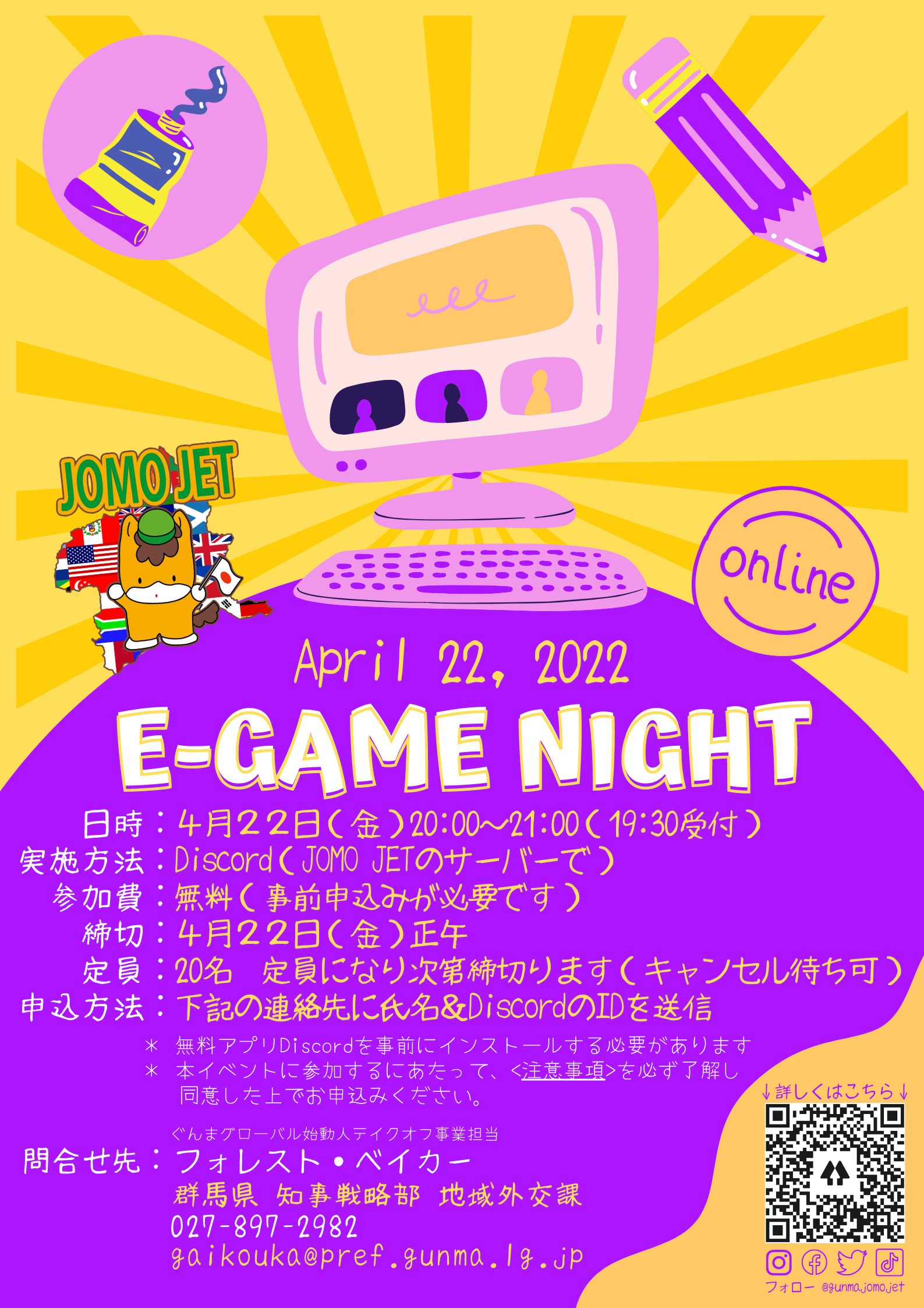 4月22日に、久々に新たなJOMO JETイベントとなる「eゲームナイト」が開幕します!