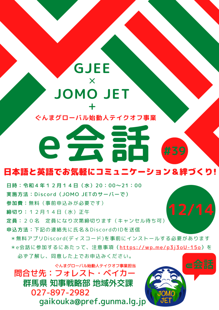 e-Kaiwa #39 will be held on Wednesday, December 14th from 20:00 to 21:00!