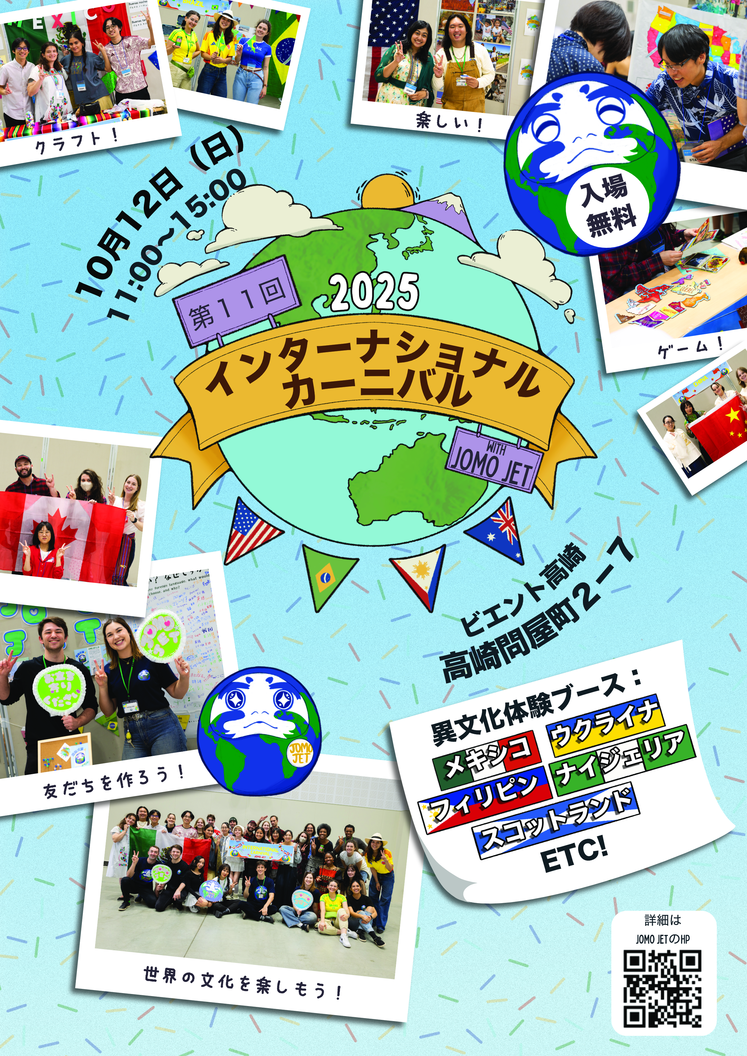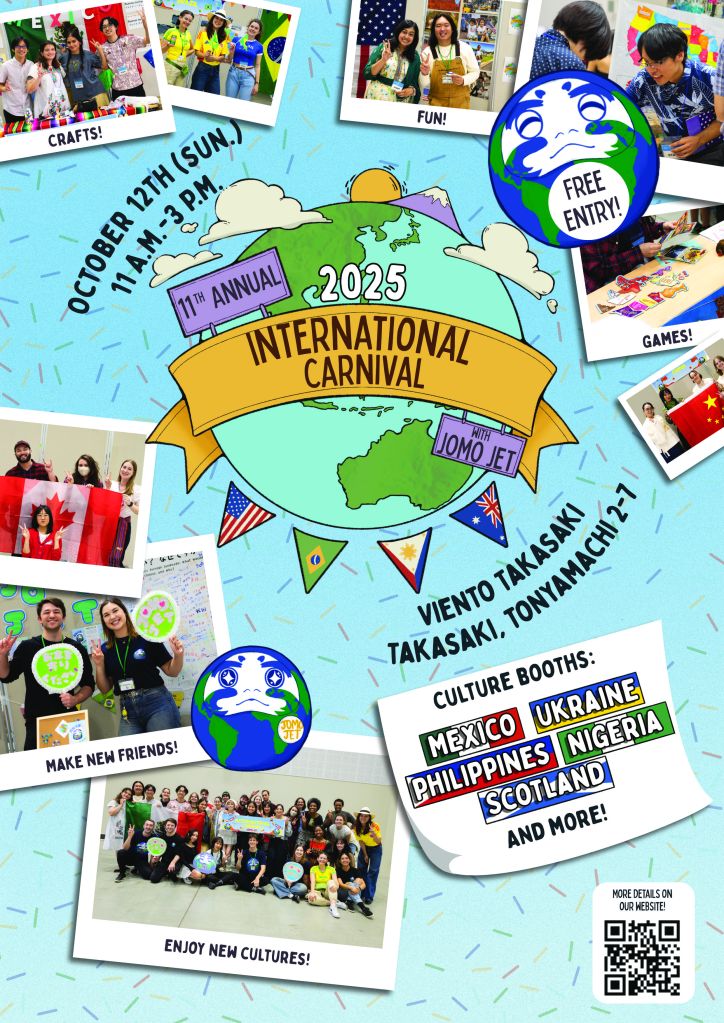 On Sunday, October 12th, in collaboration with the Takasaki International Relations Society, JOMO JET will be holding our annual International Carnival!