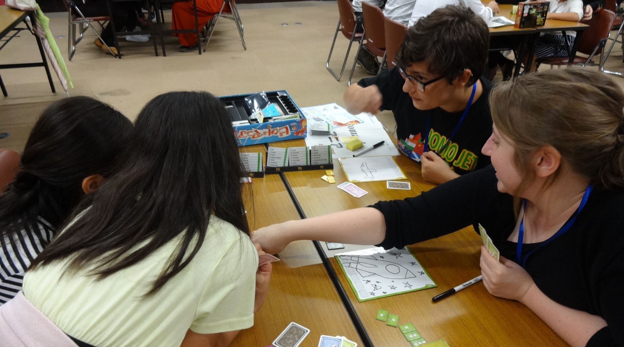イベントの名は「ボードゲーム」ですが、実際には、ボードゲームだけでなく、カードゲーム、リズムゲーム、スタッキングゲーム、スピードゲーム、英語を使用したゲームなど、色々な種類のゲームを提供しています。イベントごとに異なるので、毎回新しいものを試すことができます。