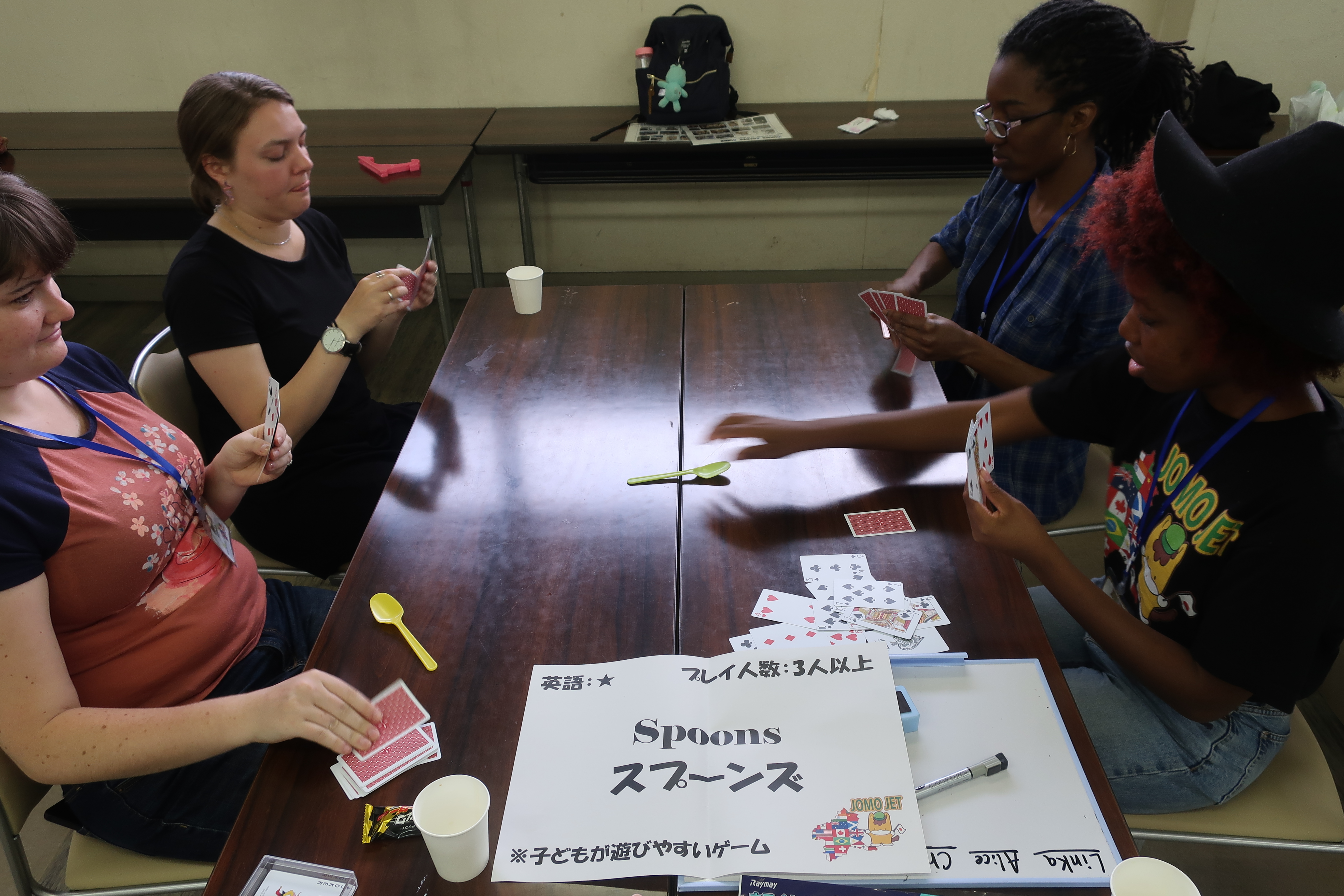 アップル・トゥ・アップルス、スプラッシュ、インカの黄金、パス・ザ・ピッグスというなゲームは聞いた事がありますか?ボードゲームイベントは、あらゆる年齢の人々が集まって、様々な国のゲームで遊びます。参加者、ボランティア、JOMO JETメンバーの皆さんにとってはこのイベントがとても気に入っており、ほぼ1か月に1回開催しています。金曜日の夜や土曜日/日曜日の午後など、県内で開催されるイベントにぜひご参加ください。